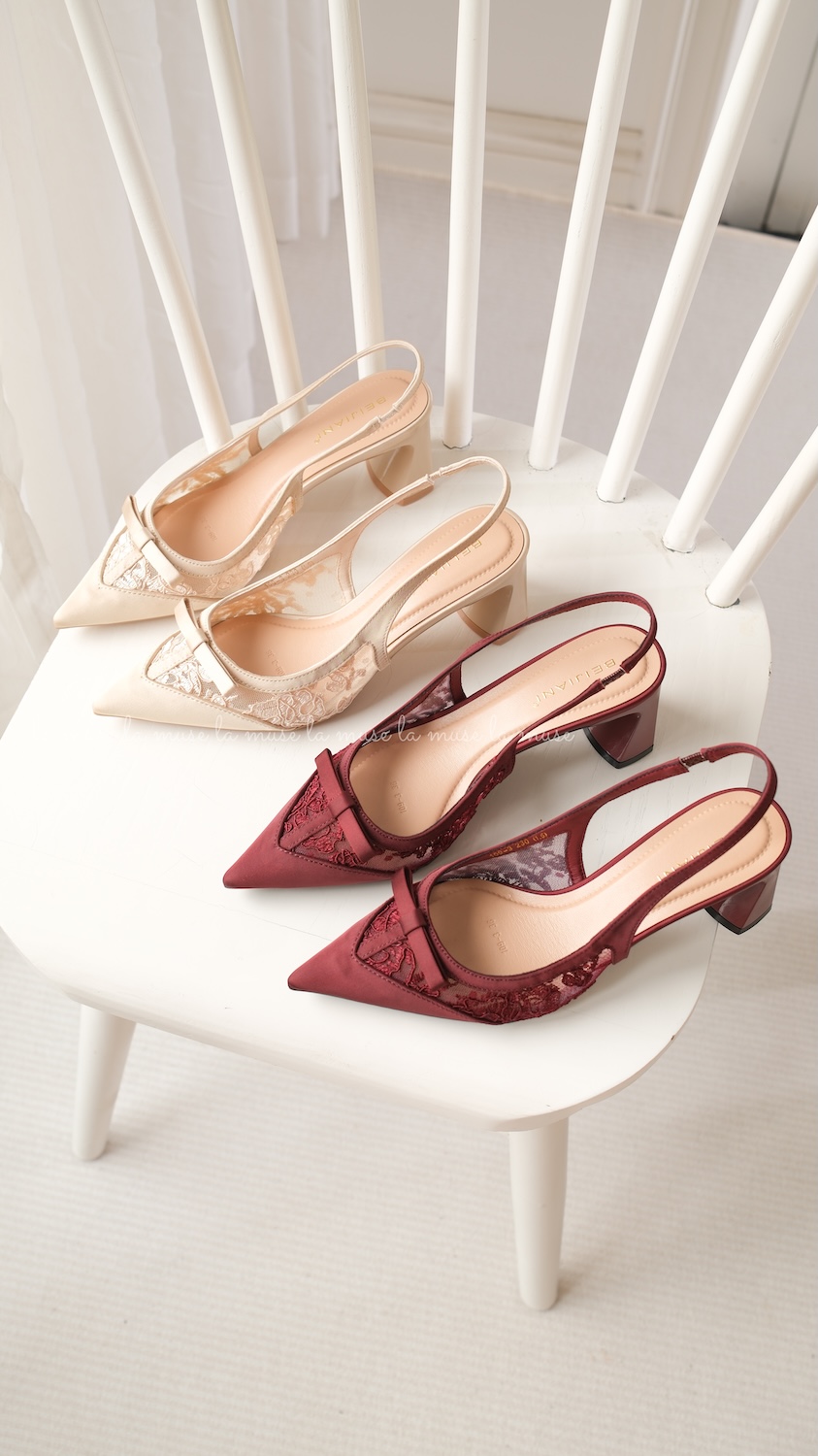Giày cao gót slingback ren lưới nữ Caroline